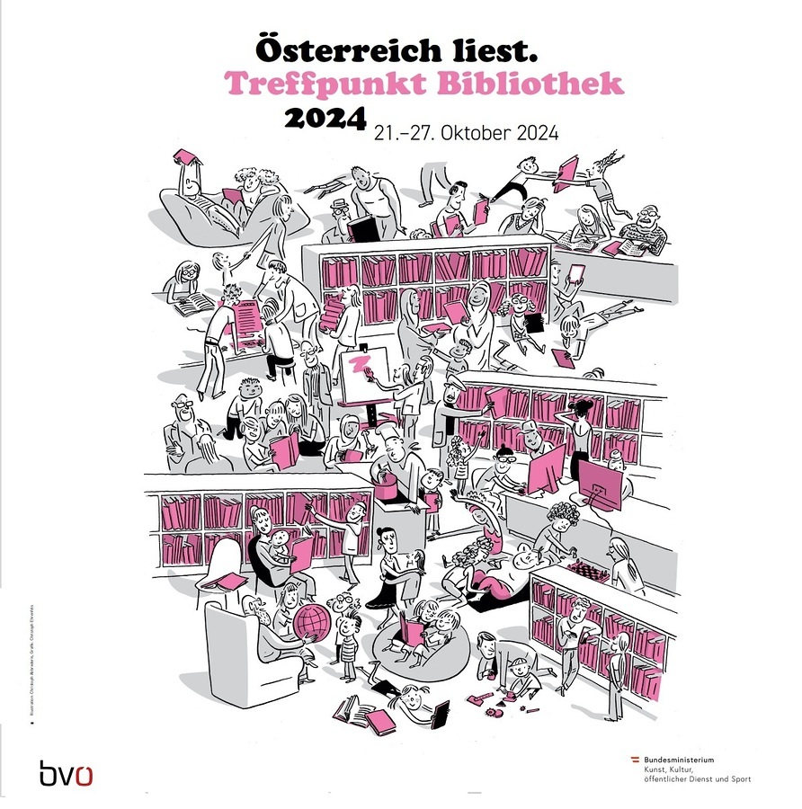 "Österreich liest. Treffpunkt Bibliothek" Lesefestival vom 21. bis 27. Oktober 2024 Vom großen Lesefest über die Märchenwanderung bis zur Kriminacht: zahlreiche Veranstaltungen erwarten Sie im Rahmen von „Österreich liest. Treffpunkt Bibliothek“ auch in Oberösterreichs Bibliotheken. mehr: "Österreich liest. Treffpunkt Bibliothek"
