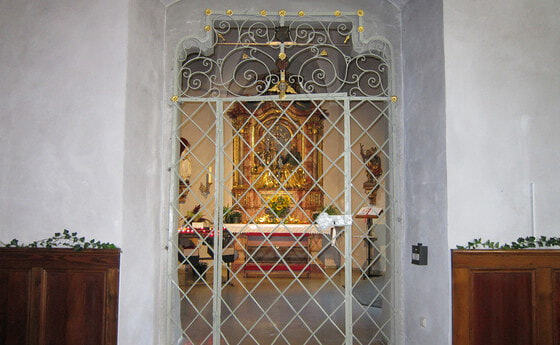 Schmiedeisengitter restauriert Vor etwa 2 Jahren wies der anerkannte Experte für historische Schmiedekunst in der Diözese Linz, Wolfgang Auer auf eine Kostbarkeit in unserer Kirche hin: Das Gitters zur Anna-Kapelle. mehr: Schmiedeisengitter restauriert